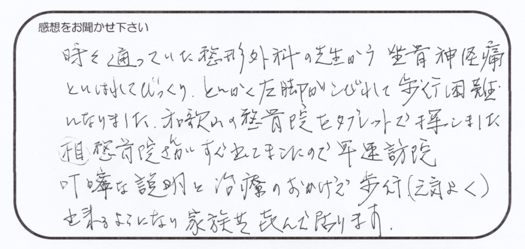 もともとは時々整形外科に通われていた中で、
